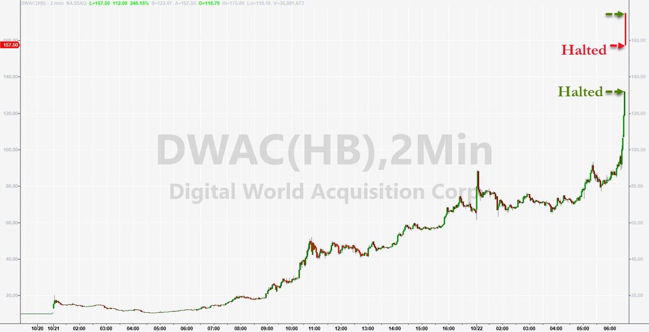 Update (1000ET): Having been halted for 30 minutes, DWAC just reopened at $175 and immediately dropped to be halted again (15 seconds later)...